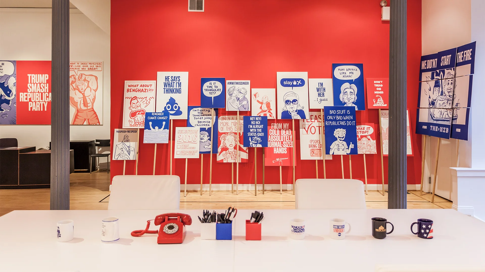 Doubleday & Cartwright created a disruptive experiential pop-up campaign office just minutes from the DNC, where editors, illustrators and staff could create sardonic picket signs, daily wheat-pasted comic strips, Trump and Clinton windbags (aka helium balloons), and anti-campaign buttons for anyone who wandered through the front door.